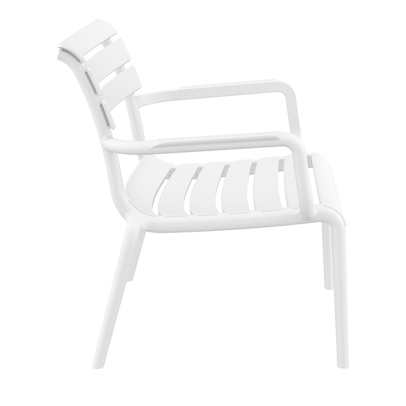 Paris lounge πολυθρόνα του οίκου Siesta σε χρώμα white.Κατασκευασμένη από πολυπροπυλένιο με 20% fiber glass για απόλυτη αντοχή στο χρόνο.Κατάλληλη για εσωτερική και εξωτερική χρήση,στοιβαζόμενη,ιδανική επιλογή για επαγγελματικούς χώρους.Πιστοποιημένο προιόν από τον Ιταλικό οίκο CATAS.