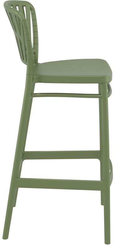 Portofino σκαμπό 75cm του οίκου Siesta σε χρώμα olive green με μοντέρνο σχεδιασμό στην πλάτη. Κατασκευασμένο από πολυπροπυλένιο με 20% fiber glass για απόλυτη αντοχή στον χρόνο. Κατάλληλο για εσωτερική και εξωτερική χρήση,ιδανική επιλογή για επαγγελματικούς χώρους. Πιστοποιημένο προϊόν από τον Ιταλικό οίκο CATAS.