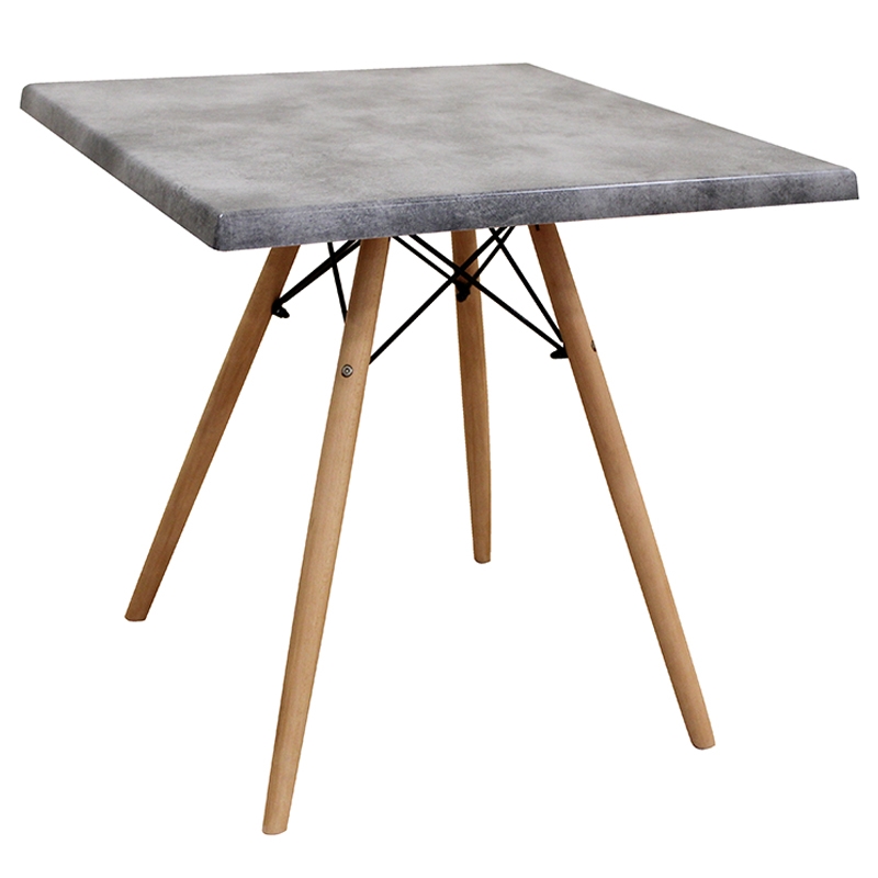 Randy werzalit τραπέζι με ξύλινα πόδια και μέταλλο και επιφάνεια werzalit 70Χ70 σε χρώμα τσιμέντο. Ένα εντυπωσιακό τραπέζι όπου χάρη του σχεδιασμού και το χρώμα του ικανοποιεί όλα τα γούστα. Μπορεί να συνδυαστεί με όλες τις καρέκλες design και είναι ιδανικό για μικρούς χώρους.