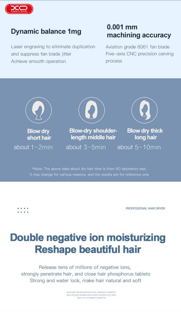 Λειτουργία στεγνωτήρα μαλλιών: σταθερός έλεγχος θερμοκρασίας + έλεγχος αέρα (προστασία υπερθέρμανσης, ισχυρός κινητήρας κατά των παρεμβολών)