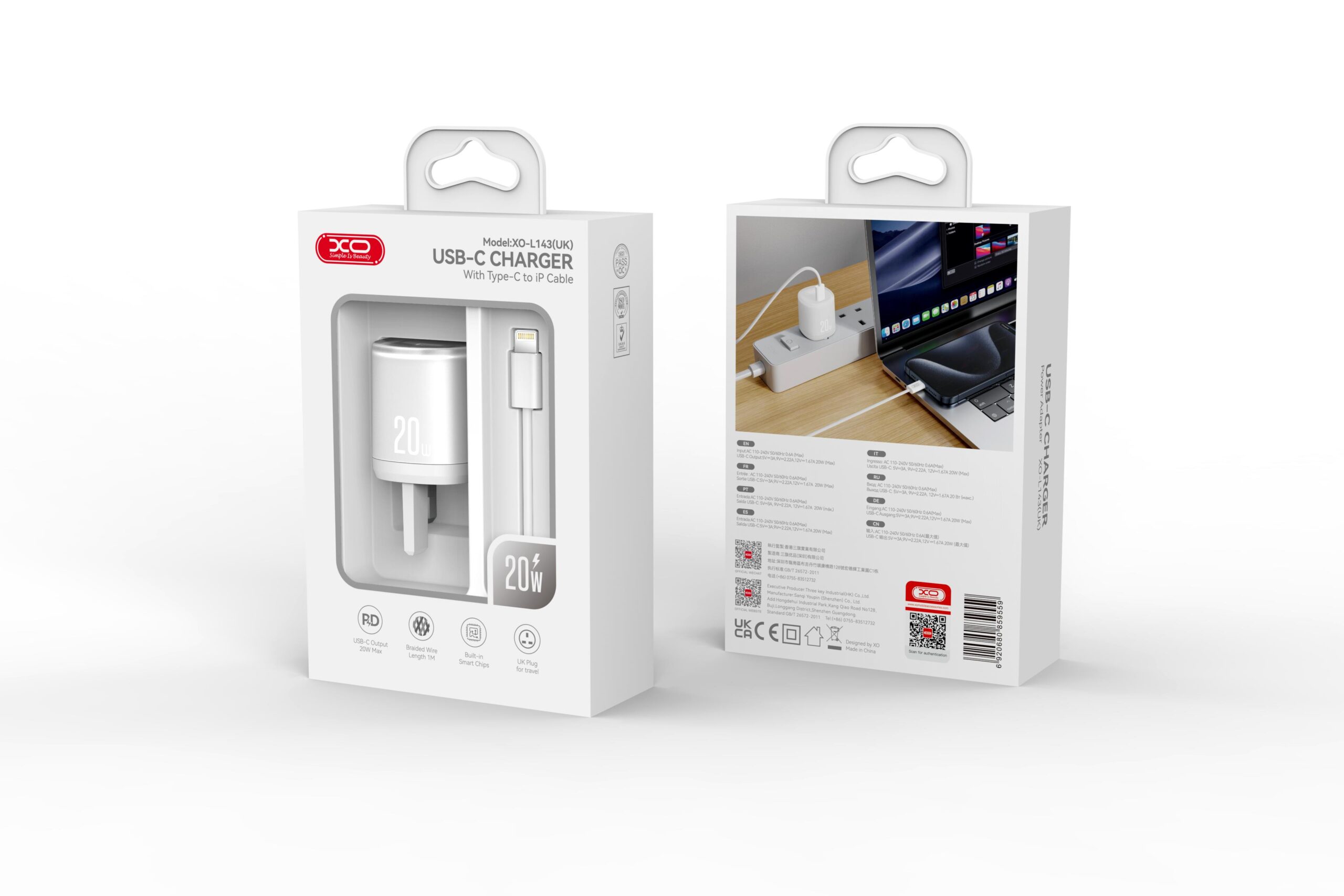 XO L143 ΦΟΡΤΙΣΤΗΣ PD20W, 1 ΘΥΡΑ TYPE-C, ΜΕ ΚΑΛΩΔΙΟ TYPE-C, ΛΕΥΚΟΣ