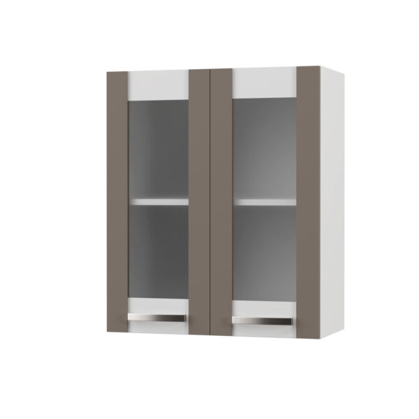 CHARLOTΤE Πάνω Ντουλάπι Με Τζάμι 60×30.5×71.8εκ με μεταλλικά χερούλια Μόκα